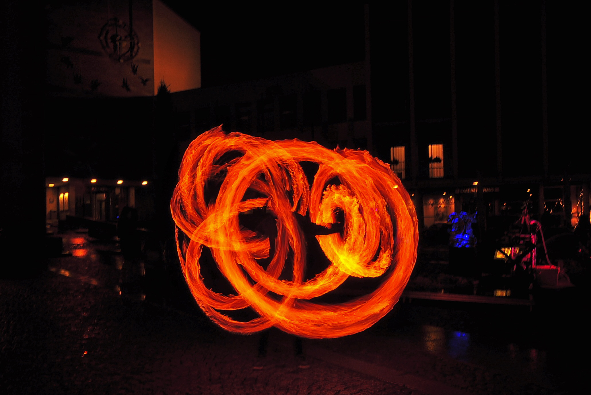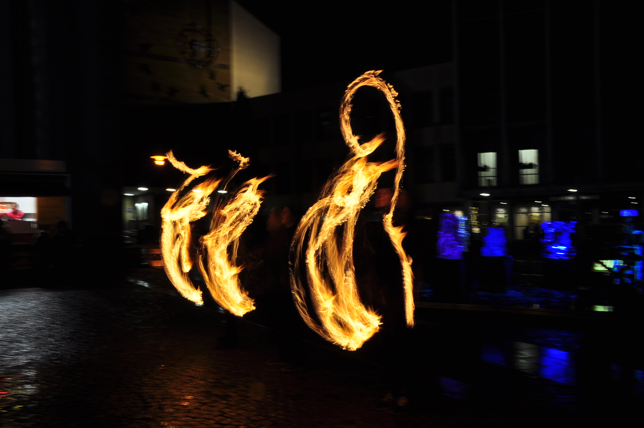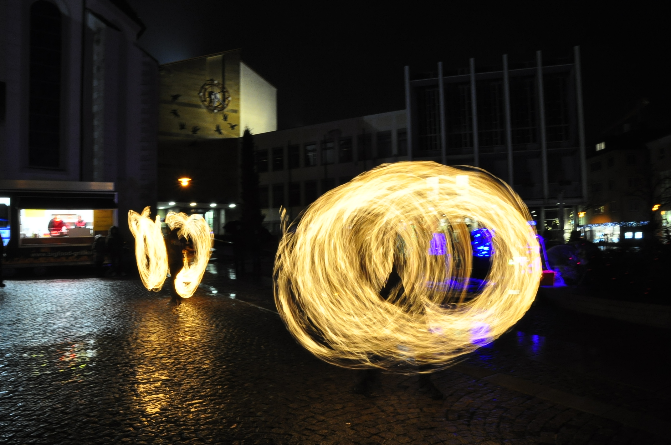 Feuer und Eis... auf dem Adenauerplatz in Friedrichshafen. Ein "Spiel" der Elemente. Die ZirkusAkademie "umspielt" den Eiskünstler.