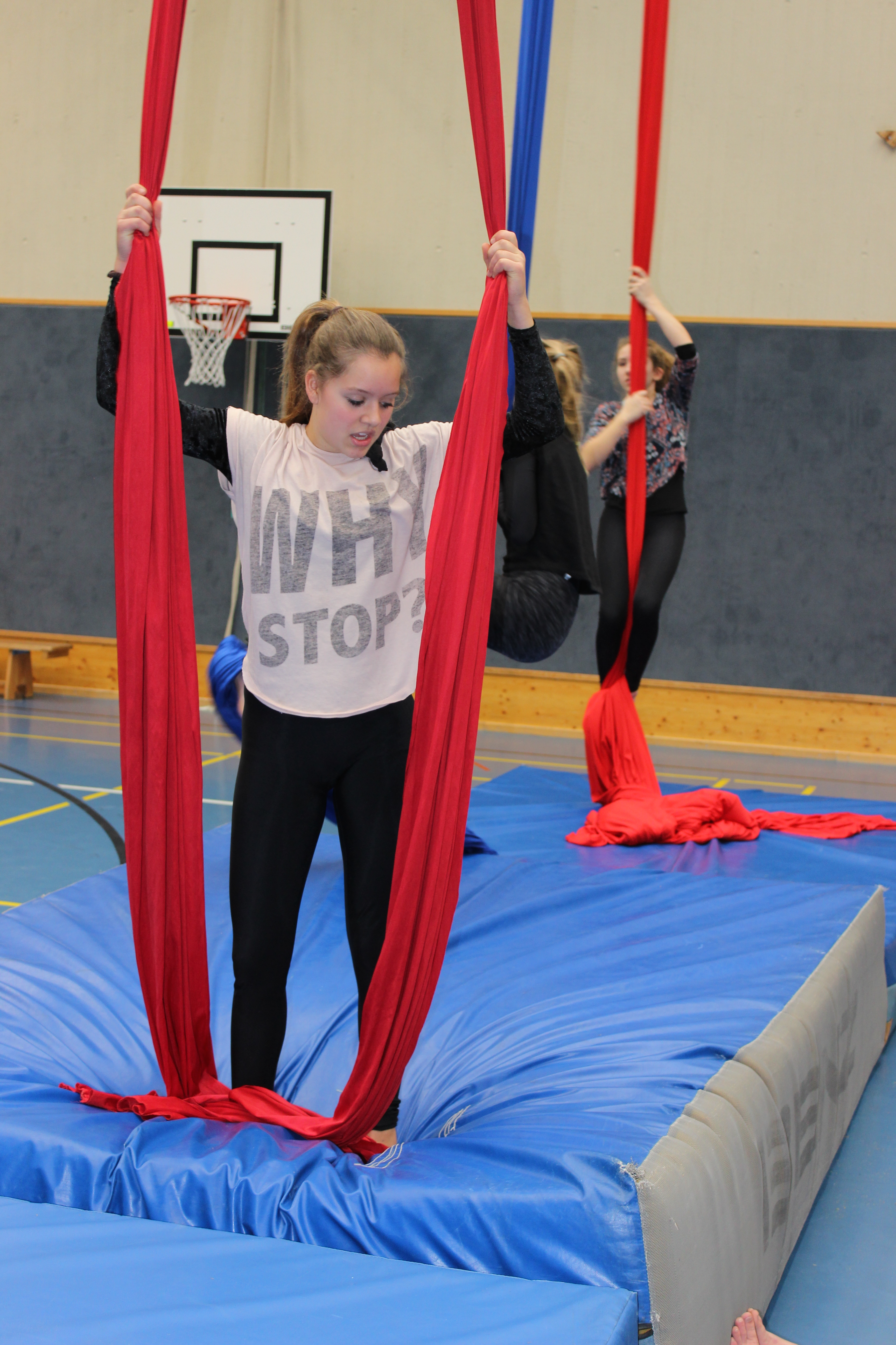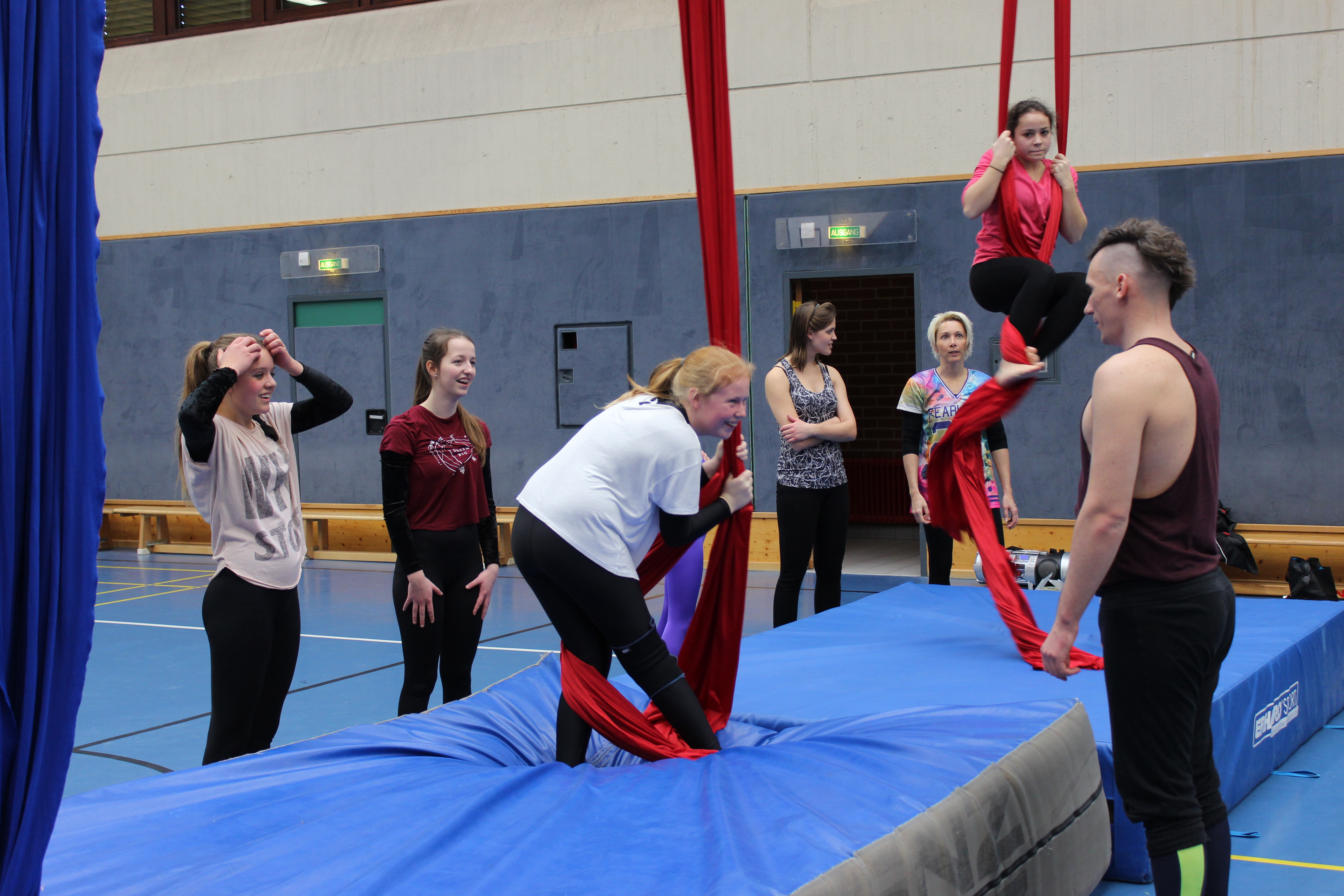 Beim Tuchworkshop mit Matho, ein Artist aus Berlin. Sichtlich Spass machte den Teilnehmerinnen das "Arbeiten" am Tuch. Die ZirkusAkademie sagt DANKE für die zwei tollen Tage.